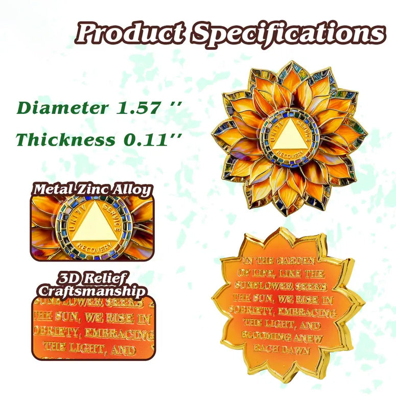 This Recovery Commemorative Coin is more than just a symbol; it serves as a powerful reminder of the journey of recovery and personal growth. The vibrant petals of the sunflower, always facing the sun, represent more than just a beautiful flower—they mirror the journey of those in recovery. Just as the sunflower turns toward the light, individuals in recovery seek hope and strength even in their darkest moments. No matter the setbacks or struggles, it blooms with resilient hope. 🎉